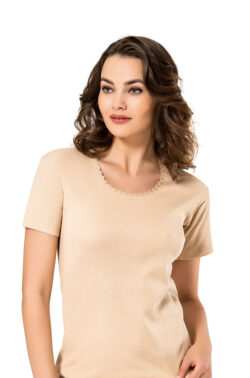 Γυναικεία Φανέλα με Kοντό Mανίκι Μοτίφ στο Λαιμό