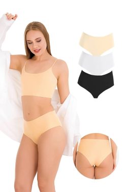 Γυναικείο κιλοτάκι ψηλόμεσο χωρίς ραφές. Δεν διαγράφει και προσφέρει απαλή αίσθηση. Ιδανικό για καθημερινή χρήση. Πακέτο 3 τεμαχίων.