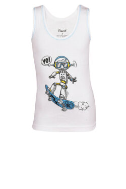 Παιδική φανέλα για αγόρια με στάμπα. Για άνεση και αντοχή στο χρόνο. Κατασκευάζεται από 100% βαμβάκι, εξαιρετικά ανθεκτικό και απορροφητικό. Iδανικό για καθημερινή χρήση. Το σχέδιο ενδέχεται να αλλάζει